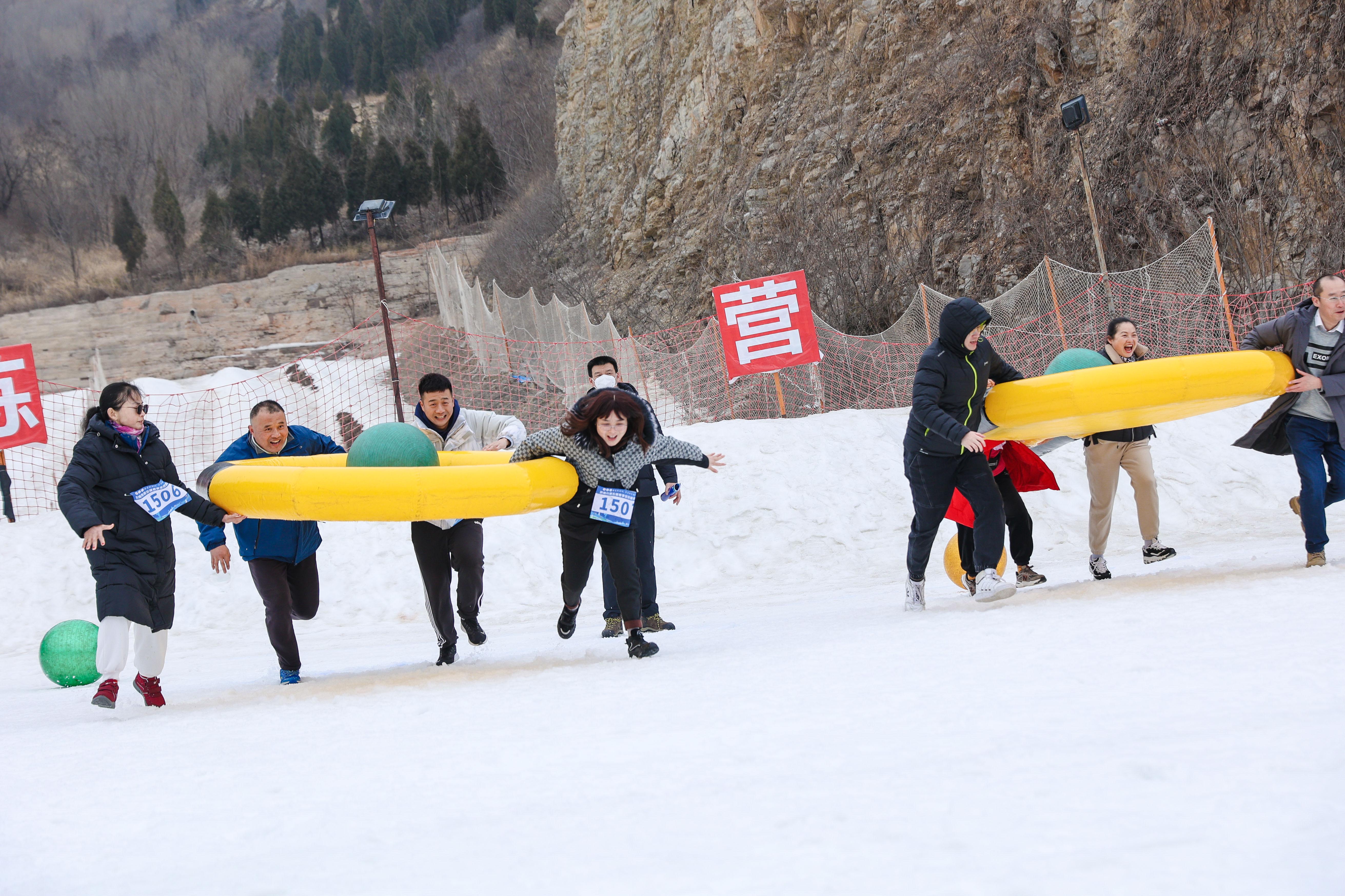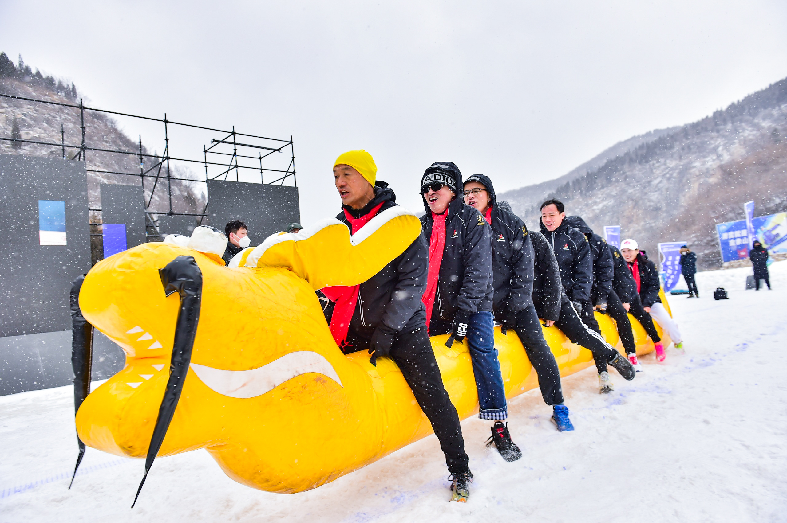 1月14日,雪地拔河、雪地龙舟、雪地三人毽子轮踢、雪地托球跑4个雪上项目在...